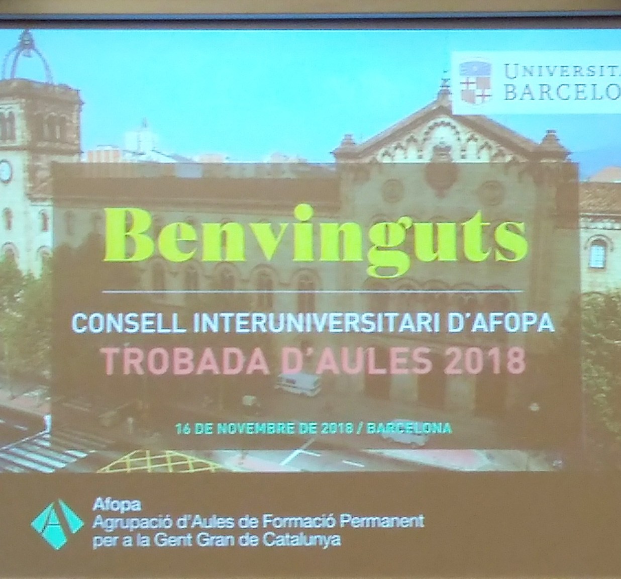 Un cop en el vestíbul ens dirigim a l'Aula Magna. On tindrà lloc la trobada d'Aules d'AFOPA.