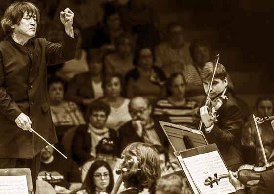 Es fa el silenci i apareixen els músics que formen l'Orquestra Simfònica de Barcelona i Nacional de Catalunya, OBC acompanyats pel cor de cambra de Granollers i cor Madrigal, amb el director Harmut Haenchen.